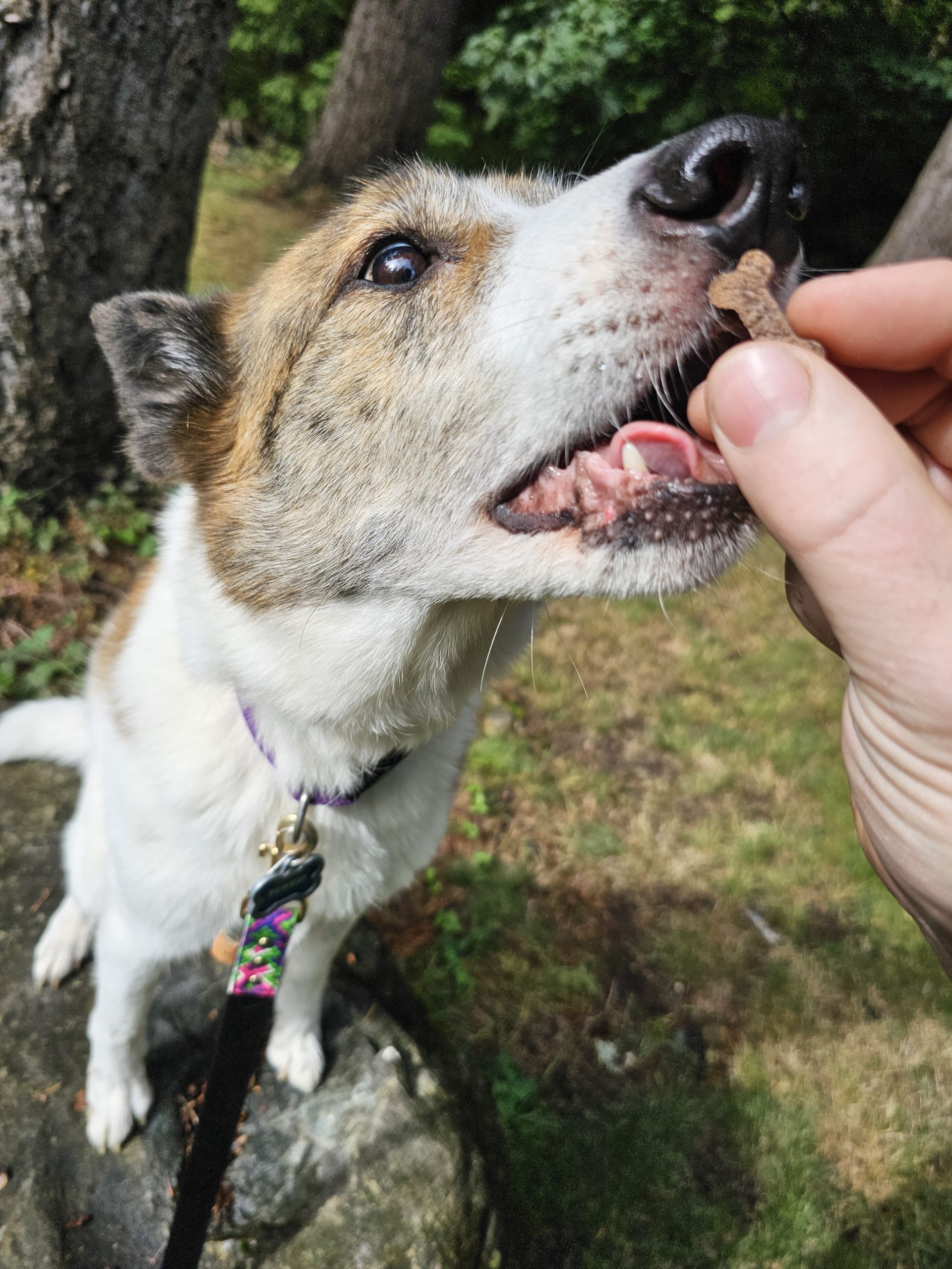 It started with a picky dog with a sensitive stomach. Finding treats that were motivating for an energetic dog in training was challenges, especially when 9 out of 10 treats tried caused tummy issues. Utilizing a background in food science, a recipe with few ingredients packed with flavor was born.